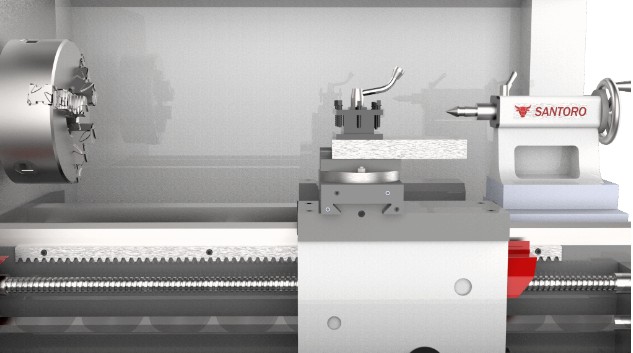 Bancada reforzadas con guías templadas e rectificadas que garantizan un ajuste exacto y un contacto completo de la mesa sobre la bancada, proporcionando rigidez, estabilidad y precisión durante las operaciones de torneado.